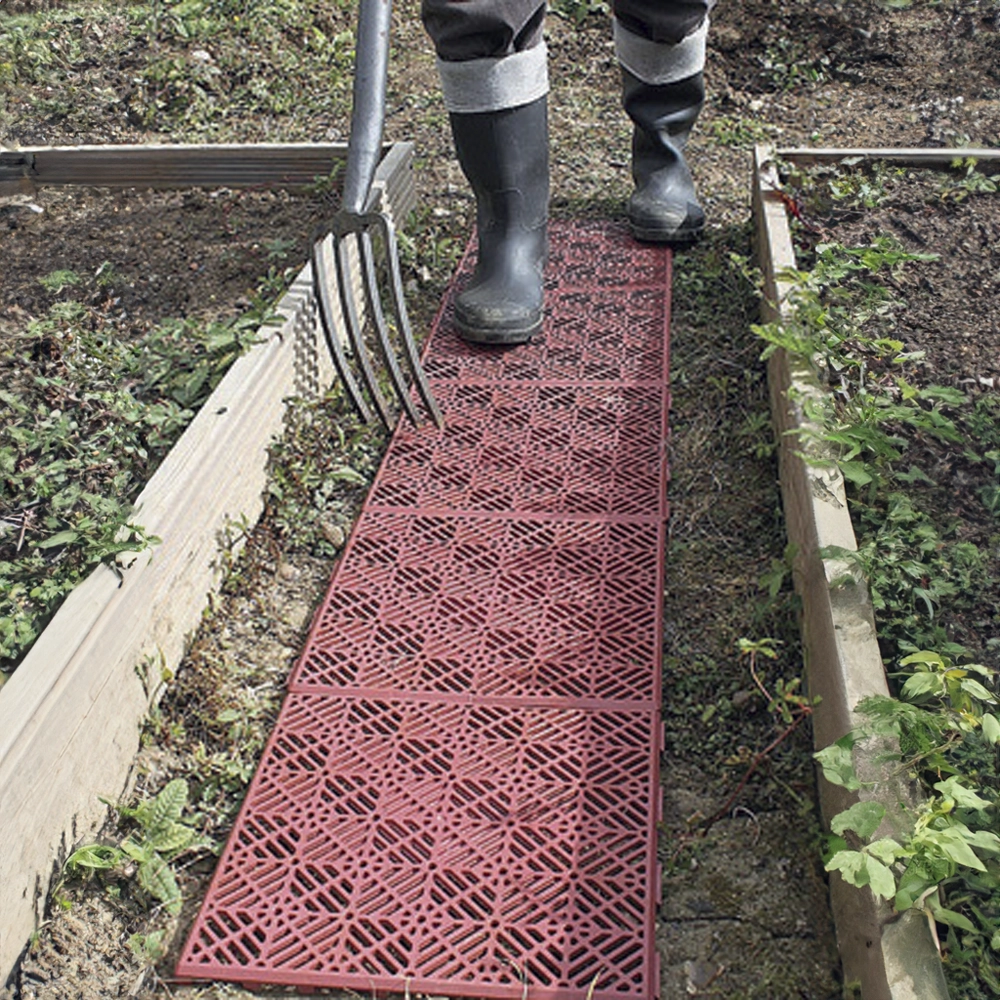 Each tile measures 29.5cm x 29.5cm (11.5in x 11.5in) and can be effortlessly connected to another tile on any of its four sides. Whether you’re looking to create a walkway through your garden or transform your vegetable plot, these interlocking tiles are your go-to solution.