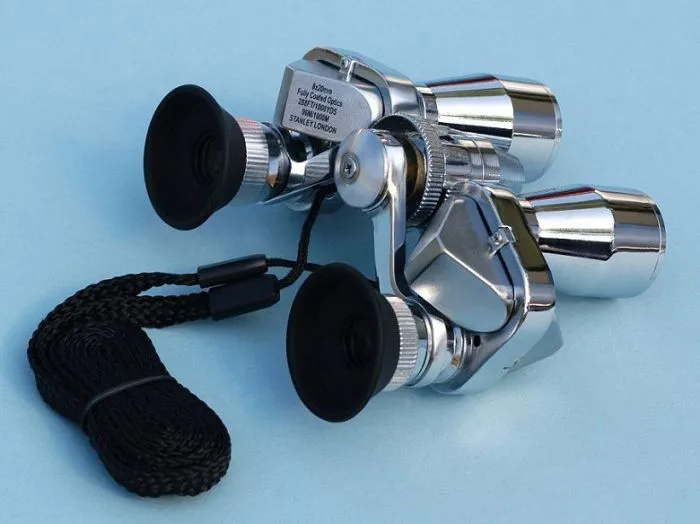 SThe Stanley London premium quality 9×20 mm chrome binoculars offer a blend of exceptional interior optics within a sleek, compact frame. Built with Porro prisms and multi-coated optics, these binoculars effectively reduce reflection and enhance contrast, delivering sharp, vivid imagery. With user-friendly features like a center focus knob and individual eye adjustment, they’re easy to operate. Whether for bird-watching or enhancing a theater experience, their advanced compact design ensures they’re a lightweight companion.