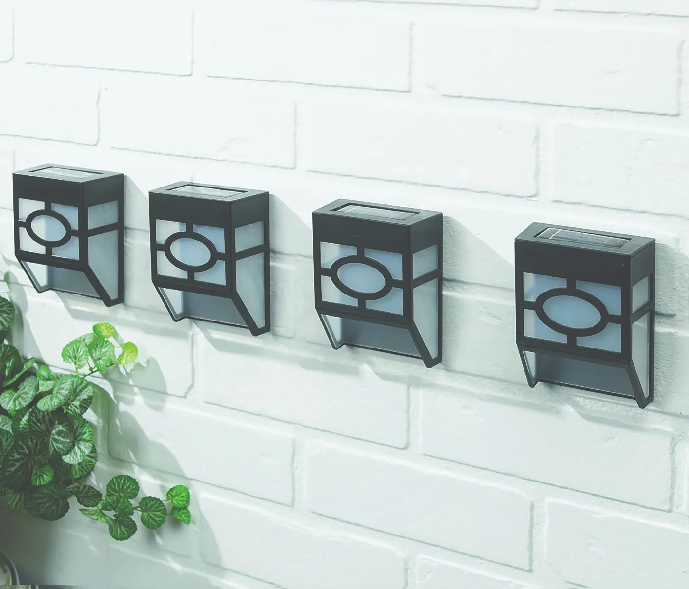 This attractive set of four solar fence lights give out a delightful warm ambient down light and are ideal mounted onto fencing or near outside steps. In a classic black Tiffany style design with opaque plastic they will add elegance to any garden.