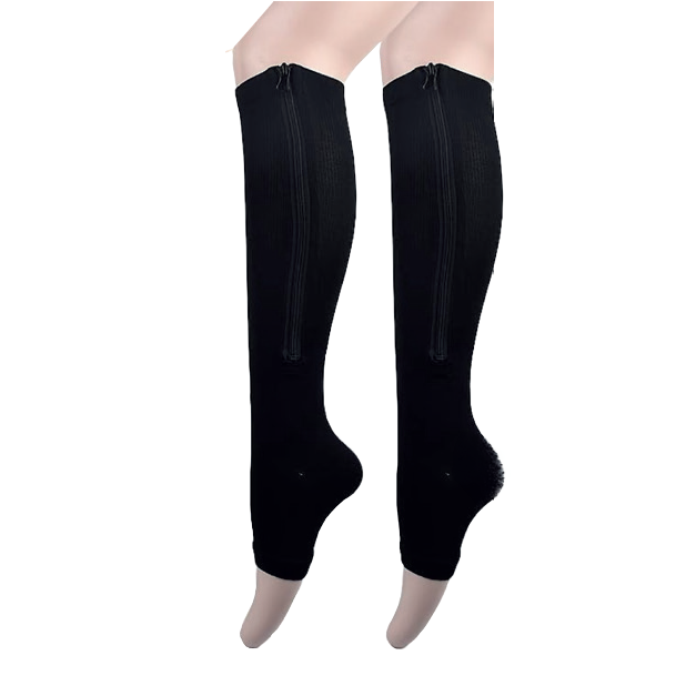 The lateral side zip design makes it easy to zip on and off without any strain. Available in unisex sizes S/M (Calf 12” to 16.5” and Ankle 8.5” to 10”) and L/XL (Calf 13.5” to 19.5” and Ankle 11.5” to 13”), these stockings can be comfortably worn underneath regular socks for added convenience.